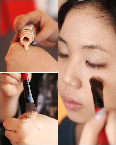 1. Sử dụng cọ đánh kem nền