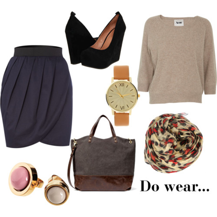 Váy: Váy bút chì là một trong những trang phục thể hiện sự thanh lịch và nữ tính nhất. Khi mặc chúng, nhìn bạn giống như một nữ doanh nghiệp thành đạt. Đối với những cô nàng trẻ trung thì một chiếc váy tuy-luýp như trong hình là một lựa chọn hoàn hảo.